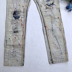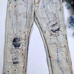 NWT. Light Wash Distressed Skinny Crop Jeans for Women Size 6. Zipper and button for closure, 5 pockets design, has loops, "paint splatter" design throughout. Please note, size is not correct and please see measurements for best sizing. This will not fit a Size 12, and As per measurements, this will be best for Size 6 and marking it as such. Pictures are part of description.