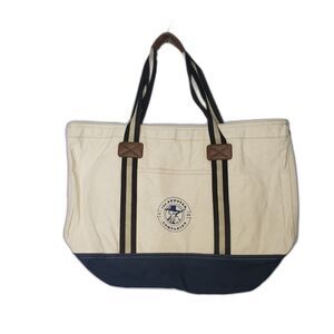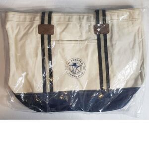 Heritage Canvas Tote Bag Navy Trim Striped Lining Large The Andover Companies