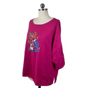 Heritage Charm Y2K Top Womens 1X Pink Seahorse Christmas Tree Coastal Grandma