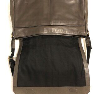 Slate grey, leather Coach messenger bag. Dates from the early 2010s. Gently used! A few flecks of wear (documented in photos). Very smart and tailored, but have realized I wear very little grey, and thus hardly use it.