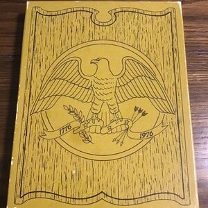 Never used. Opened box. Colonial design has an eagle, flag and liberty bell. Made of metal (not sure what kind). Box does have some rubbed places along the edges.