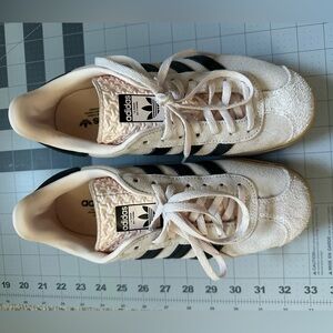 Classic Gazelles on steroids - gum platform with cream, dark blue and peachy accents— note the first 2 pics are stock not actual item. Sold out everywhere except the resellers. Worn 1x inside a tad too small. Love the fun heritage Gazelle mark. So cute w jeans or a flowy dress!