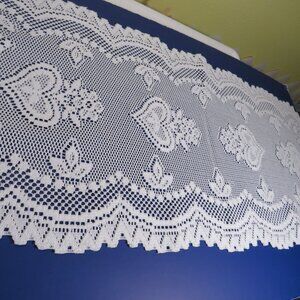 Heritage Lace Heart Design Cream Table Runner Dresser Scarf 32" long