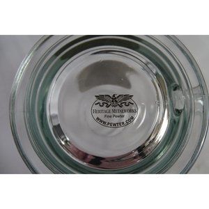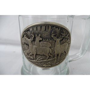 Heritage metal fine pewter Doe & Buck decanter and mug set. Set is in good pre-owned condition with no chips or cracks noted.