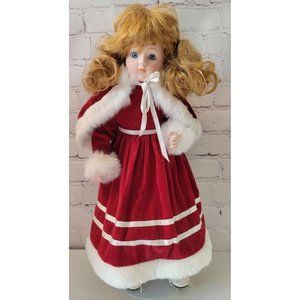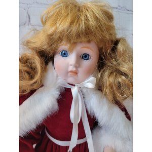 Heritage Mint Collection Jennifer Doll Red Velvet Dress 16” Christmas 1988 Includes Stand. Doll has 1 broken finger. Doll has a couple of stains on dress. Missing hat. Please see photos for details/close-up.