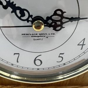 Heritage Mint LTD timepiece Quartz, mantle mounted clock, battery operated. Clock is working and in very good condition.