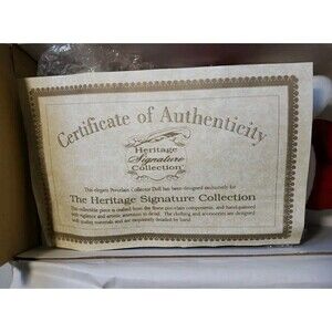 The doll is perfect for Christmas and is 13 inches in size. It is a Caucasian doll with a light complexion. The doll is a vintage item. The doll's hair type is straight and the brand is Heritage Signature.