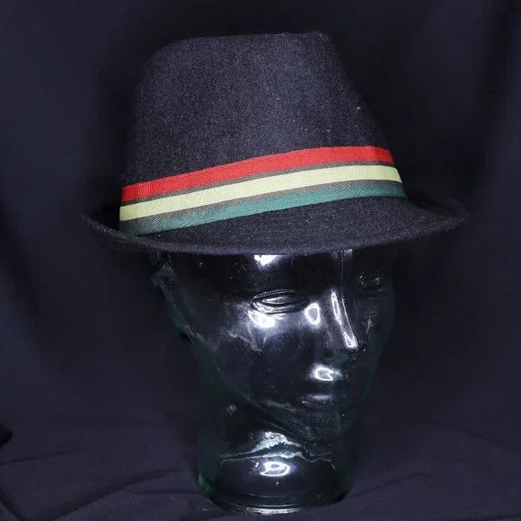 This classic black fedora is upgraded with a red, gold, and green striped band—a nod to roots, rhythm, and rebellion. The soft felt body and structured brim make it a standout piece that’s both refined and expressive.