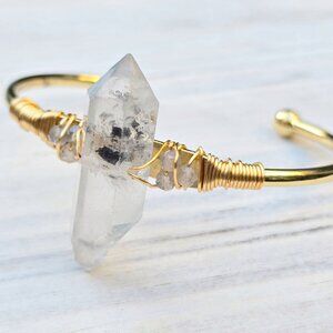 Herkimer Diamond Wire Wrap Bracelet w/ 14Kt Gold Over Copper – Adjustable – NWT