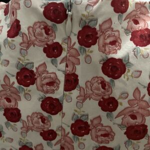 Vintage 90s Herman Geist sleeveless sheath dress It features a hidden back zip, beautiful rose print in red, print, and green on a white background, fine cotton fabric w 3% spandex for ease, fitted seaming on front and back, a back kick pleat, and sleeveless styling. Originally from Chadwicks.