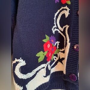 Herman Geist Sweater Cardigan Floral Hand Embroidered Grandma Core vtg cottage