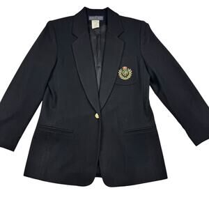 Herman Geist Vintage Academia Preppy Embroidered Crest Wool Blazer Women's SZ 10