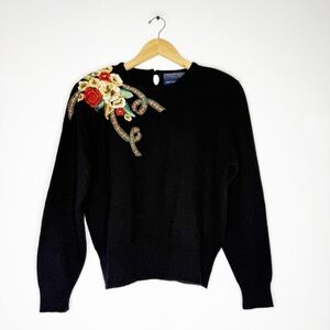 Herman Geist Vintage Hand-Embroidered Wool Blend Sweater Women’s Large