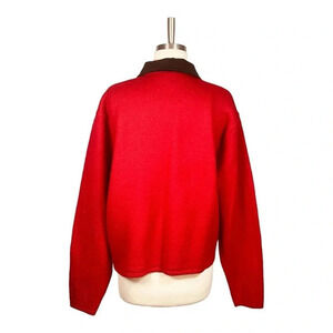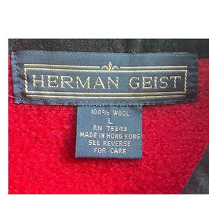 Herman Geist Vintage Red Wool Jacket Blazer Black Velvet Detail Women Size Large