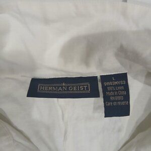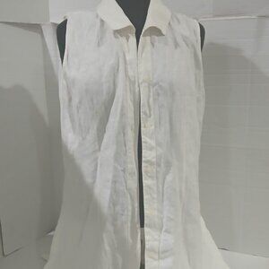 Herman Geist women's cream blouse. sleeveless button front top shirt size L.