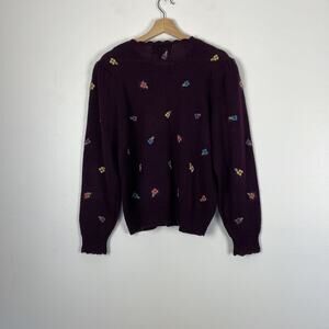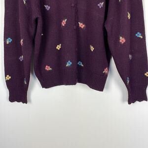 Herman Geist wool blend long sleeve button down floral embroidered sweater Womens Large.