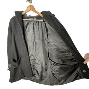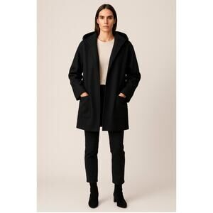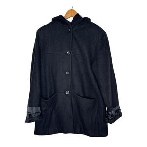 Herman Kay Womans L Luxury 100% Wool Car Coat Oversized Hooded Jacket Black