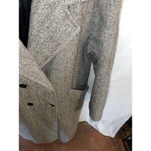 This womens gray herringbone Herman Kay overcoat is in great shape!