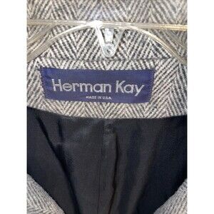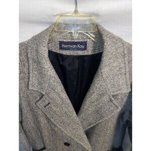 Herman Kay Women’s Overcoat Size 14 Gray Herringbone Wool Blend Going Out Party