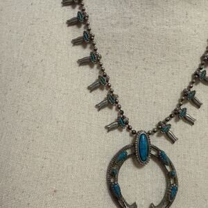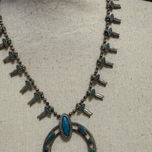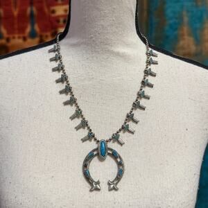 Herman Style Turquoise Squash Blossom Necklace 59.1g HMS Chain 13.25" Drop