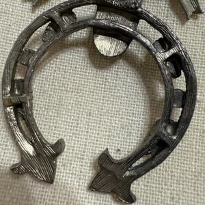 Beautifully detailed squash blossom necklace in the style of HERMAN, though may be an homage or reproduction. The necklace is magnetic, and while the back of the naja pendant is marked "HERMAN," the chain is marked "H.M.S."