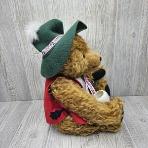 Condition: Gently used, no visible flaws. All original accessories present including hat, vest, ribbon, and mini ceramic Oktoberfest stein.