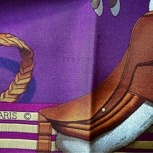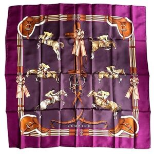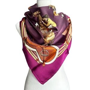 Hermes 100% Silk Purple & Fuchsia Pink Jumping Horses Large 90cm Square Scarf