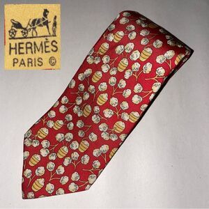 Hermes 100% Silk Tie Red Novelty Print Hops Beer Brewing