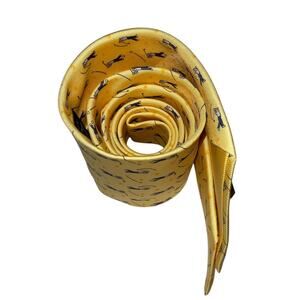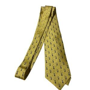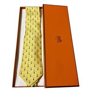 Men's Yellow Silk Hermès Tie w/ Polo Player pattern print throughout