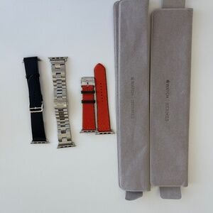 Comes with 4 Hermes watch straps 1) Hermès orange silicon 2) Hermès Single Tour 45 mm Deployment Buckle 3) Hermès Orange/Kaki Twill Jump Single Tour 4) Hermès Satiné Grand H - Medium