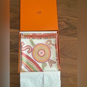 Hermes Authentic Silk Scarf with Hermes Box. 100% Silk with Original Folds.