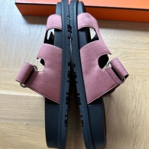 Hermes Authentic Chypre Calfskin Women’s Sandals 36 Satin Pink