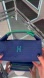 Blue canvas, silver-tone hardware, single top handle, canvas lining dual interior pockets, exposed zip closure