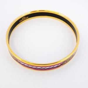 Hermes Bangle Enameled PM GP Plated Cloisonné Gold Pink Women's