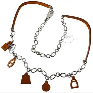 Hermes Belt Olga Charms Barenia Leather & Palladium Chain 2012 in Box