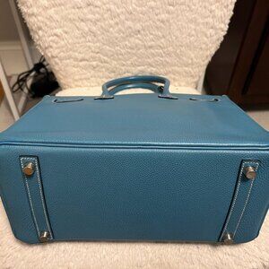 Hermes Birkin 30 in Blue Jean. Togo Leather. Comes with Key, Lock, and rain jacket