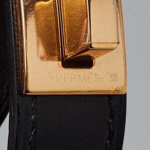Hermes Black Box Leather Gold Plated Drag Double Tour Bracelet Size T2
