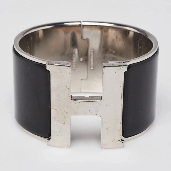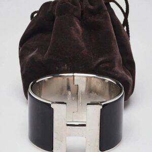 Hermes Black Enamel Palladium Plated Clic-Clac H PM Extra Wide Bracelet