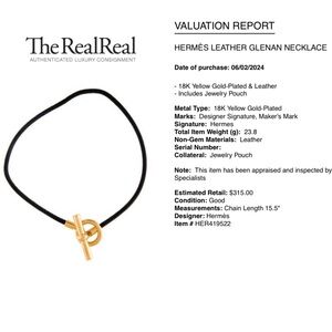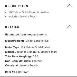 Hermes Black Leather 18k Yellow Gold Plated Glenan Necklace- 15.5” length