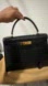 Luxurious black ostrich leather satchel. Features elegant gold hardware. Perfect for sophisticated style. Vintage, stamp undetectable. Authentic. No strap. Comes with dustbag and keys and clochette.