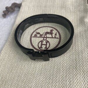 Hermes Black Warrior Enamel Matte Matte Titanium Steel Bracelet PM Fits small