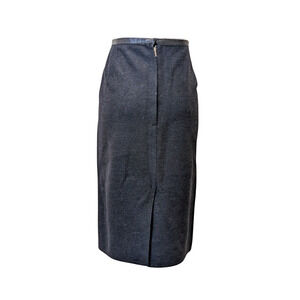 Hermes Black Wool Blend Leather Trim Pencil Skirt Size 42 US 10