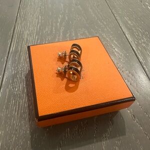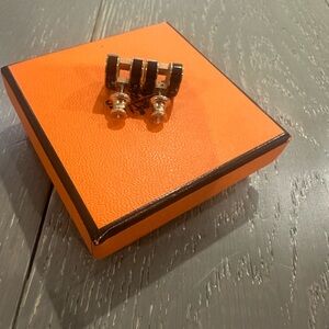 Elegant Hermes earrings. Black and silver design. Perfect for any occasion.