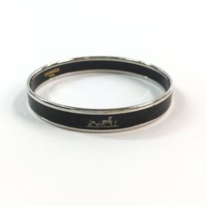 Hermes Black Enamel Caleche Horse and Carriage Bangle Bracelet
