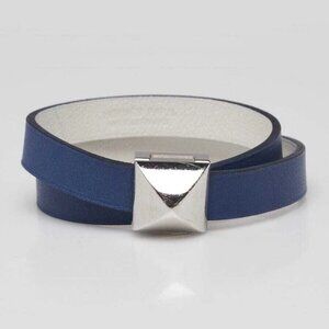 Description This lovely little bracelet from Hermes is perfect for your growing collection or if you're just starting! Featuring gorgeous blue and white swift leather with a shiny Medor stud closure in a double wrap style, this little bracelet is sure to be a new favorite! Retail price is $450. Condition The bracelet is clean and beautiful throughout. The hardware is bright and shiny. Overall it remains in excellent condition. Details Overall Condition: Like new Exterior Condition: Interior Condition: Includes: Box, dust bag and booklet Material: Blue and white swift leather Handles: Closure/Opening: Medor flip clasp Interior Lining: Interior Pockets: Hardware: Palladium plated Origin: France Production Year: 2018 Handle Drop: Measurements: 14.25" L Date/Authenticity Code: 'C' with no square (2018)