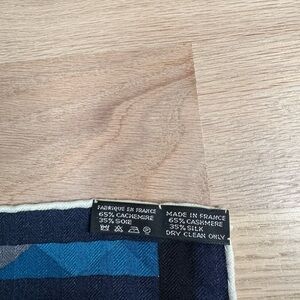 Elegant Hermes scarf featuring a patchwork horse design. Rich blue and gray tones. Perfect for adding a touch of luxury. Does not include original box or papers. Edging is in perfect condition, no stains or markups.