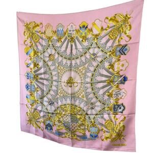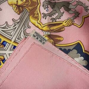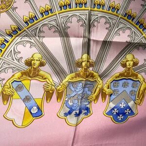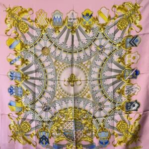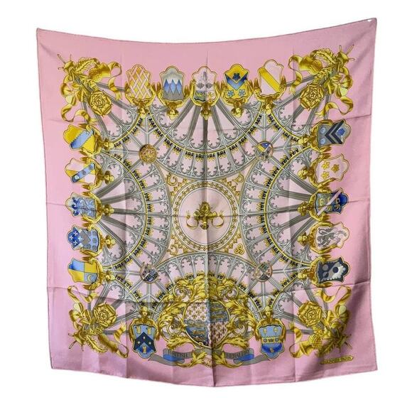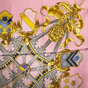 Hermes British Heraldry Coat Of Arms Pink Gold Blue 100% Silk Scarf 90cm Square