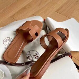 Hermes Brown Leather Slide Sandals