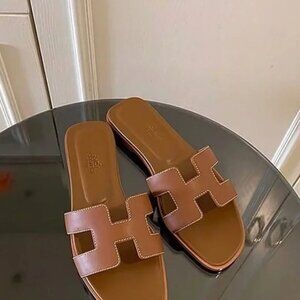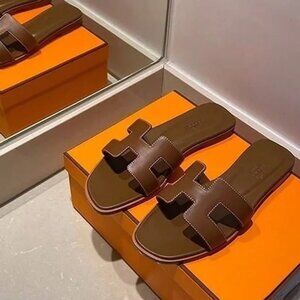 Elegant Hermes sandals in brown. Stylish and comfortable.