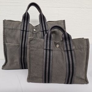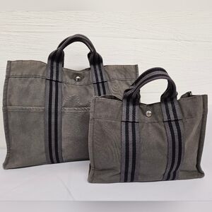 Hermes Canvas Fourre Tout Holdall MM and GM Tote Bag Set in Gray and Black